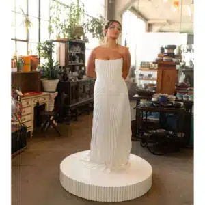 - Stylish white fluted pedestals, ideal for showcasing floral arrangements at weddings and events.