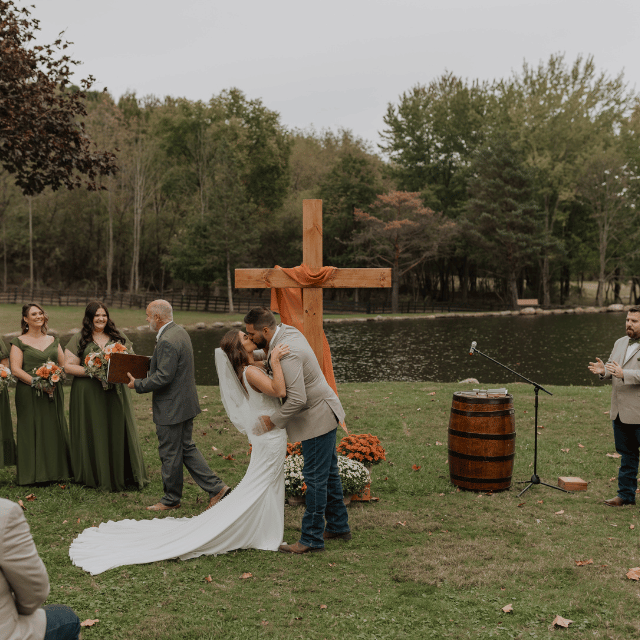 Not really an arch, but a very beautiful large wooden cross. One side is beautifully finished with a darker stain, the other side has a contrasting raised inner piece with a lighter stain with chamfered edges.