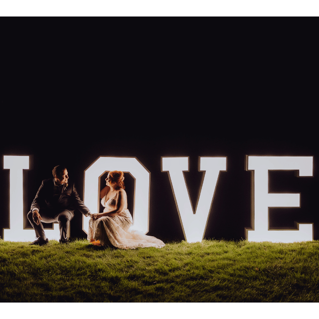 Giant LOVE Marquee Letters for the perfect wedding backdrop.