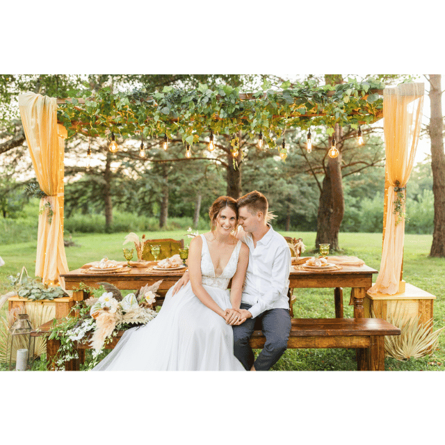 We designed these canopy greenery ladder lights to fit over our tables, wanted to make the beautiful even more beautiful. The artificial ivy drooping over our tables can make for some awesome photos by itself. You can add your own touches to this floral arbor, maybe some flowers or more greenery and wow!